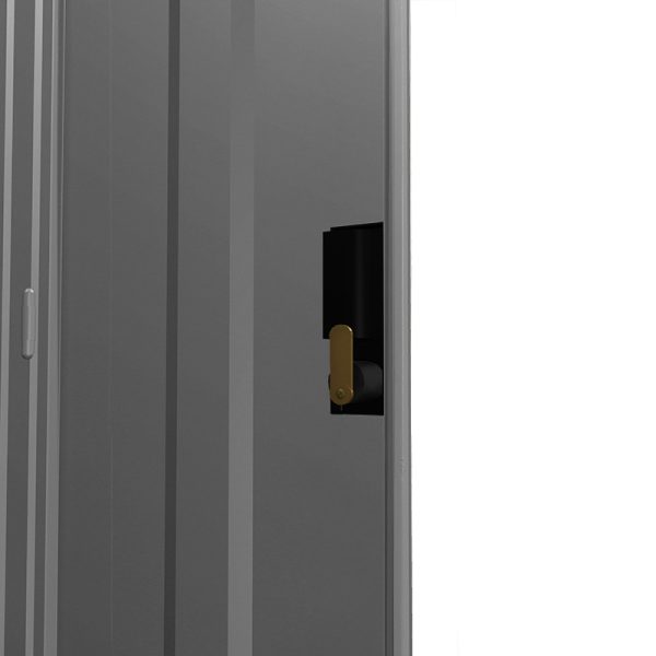 La puerta lleva su cerradura con llave. Color gris o arena