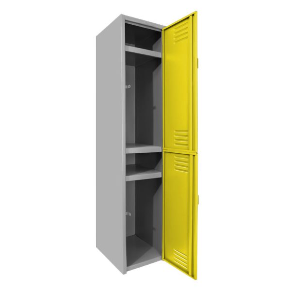 El cuerpo y las puertas son ensambladas mediante soldadura por resistencia. Las puertas se abren y cierran por medio de 2 bisagras tipo libro. Cada puerta cuenta con 2 rejillas de ventilación, estiradera y portacandado. Color gris o arena.