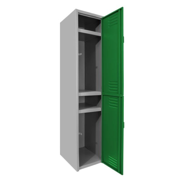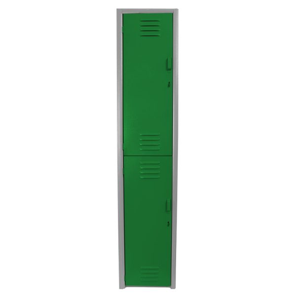 El cuerpo y las puertas son ensambladas mediante soldadura por resistencia. Las puertas se abren y cierran por medio de 2 bisagras tipo libro. Cada puerta cuenta con 2 rejillas de ventilación, estiradera y portacandado. Color gris o arena.