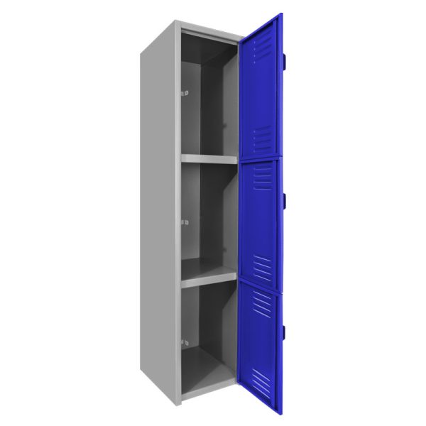 El cuerpo y las puertas son ensambladas mediante soldadura por resistencia. Las puertas se abren y cierran por medio de 2 bisagras tipo libro. Cada puerta cuenta con 2 rejillas de ventilación, estiradera y portacandado. Color gris o arena.