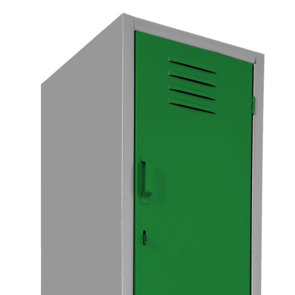 El cuerpo y las puertas son ensambladas mediante soldadura por resistencia. Las puertas se abren y cierran por medio de 2 bisagras tipo libro. Cada puerta cuenta con 2 rejillas de ventilación, estiradera y portacandado. Color gris o arena.