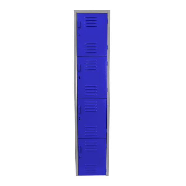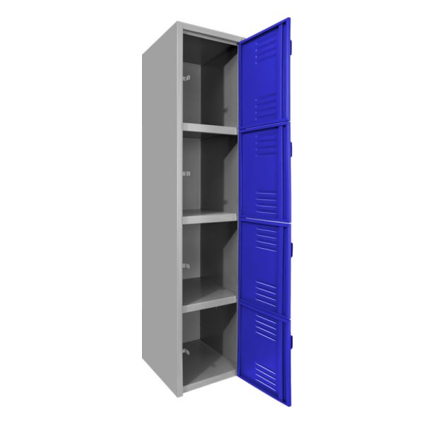 El cuerpo y las puertas son ensambladas mediante soldadura por resistencia. Las puertas se abren y cierran por medio de 2 bisagras tipo libro. Cada puerta cuenta con 2 rejillas de ventilación, estiradera y portacandado. Color gris o arena