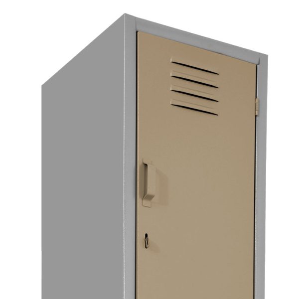 El cuerpo y las puertas son ensambladas mediante soldadura por resistencia. Las puertas se abren y cierran por medio de 2 bisagras tipo libro. Cada puerta cuenta con 2 rejillas de ventilación, estiradera y portacandado. Color gris o arena